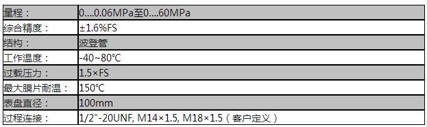 SDG-625耐振型轴向安装隔膜压力表该压力表采用高强度螺套压紧密封,高弹性合金波纹膜片、原装进口机芯,全不锈钢轴向安装结构设计,适用于机械震动和压力有波动的条件下的流体压力测量。应用于均质机、乳化机、破碎机、化工、食品等领域
